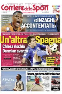 L'edizione odierna de "Il Corriere dello Sport" si sofferma in prima pagina sull'Italia che dopo la sconfitta con la Spagna...