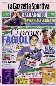 L'edizione odierna de "La Gazzetta dello Sport" dedica la prima pagina all'Italia e a Fagioli.