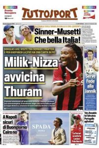 Prima pagina Tuttosport: “Milik-Nizza, avvicina Thuram”