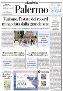 La prima pagina dell'edizione odierna di "La Repubblica Palermo" affronta il tema turismo che potrebbe essere penalizzato dai probabili problemi...