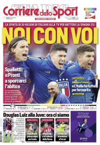 L'edizione odierna de "La Gazzetta dello Sport" esalta in prima pagina l'Italia di Luciano Spalletti, impegnata stasera contro la Spagna...