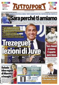 L'edizione odierna di Tuttosport dedica la prima pagina alla Juventus e a Trezeguet.