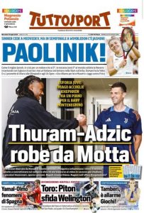 L'edizione odierna di Tuttosport dedica un titolo in prima pagina alla Juventus.