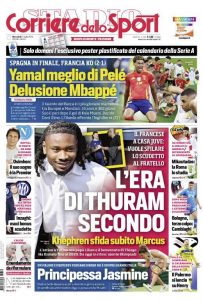 L'edizione odierna de La Gazzetta dello Sport dedica un titolo in prima pagina alla Spagna e a Yamal.