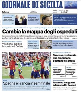 L'edizione odierna de Il Giornale di Sicilia dedica la prima pagina ad Euro 2024 con Spagna a Francia che volano...