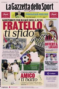 L'edizione odierna de La Gazzetta dello Sport dedica un titolo in prima pagina alle vicende dell'Italia e sulla Figc.
