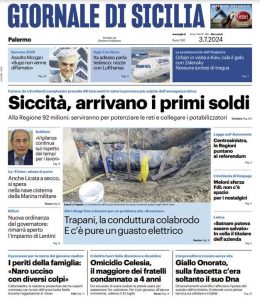L'edizione odierna de Il Giornale di Sicilia dedica un titolo in prima pagina alla Siccità.