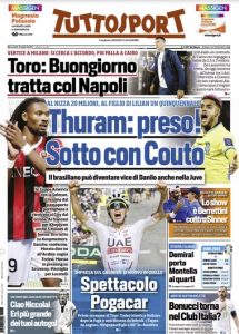 L'edizione odierna di Tuttosport dedica un titolo in prima pagina alla Juve e all'arrivo di Thuram.