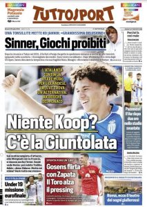 L'edizione odierna di Tuttosport dedica un titolo in prima pagina al forfait di Sinner.
