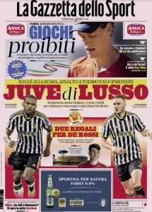 L'edizione odierna de "La Gazzetta dello Sport" dedica un titolo in prima pagina alla Juventus.