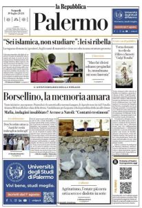 L'edizione odierna de "La Repubblica Palermo" dedica la prima pagina all'anniversario della strage di via D'Amelio.