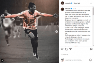 Palermo, l’addio di Soleri: “Tifosi, grazie per il sostegno che mi avete dato. Sarò sempre uno di voi” (FOTO)