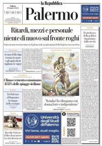 L'edizione odierna de La Repubblica Palermo dedica un titolo in prima pagina al problema dei roghi in Sicilia.