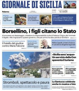 L'edizione odierna de Il Giornale di Sicilia dedica la prima pagina all'eruzione dello Stromboli.