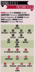 L'edizione odierna de "Il Giornale di Sicilia" si sofferma sulle probabili formazioni del match di oggi tra Parma e Palermo.