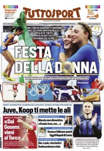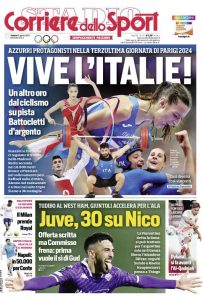 L'edizione odierna de Il Corriere dello Sport dedica un titolo in prima pagina alle medaglie vinte dall'Italia alle olimpiadi.