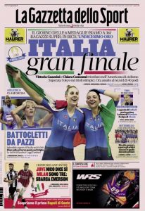 L'edizione odierna de La Gazzetta dello Sport dedica un titolo in prima pagina all'Italia e alla vittoria delle medaglie alle...