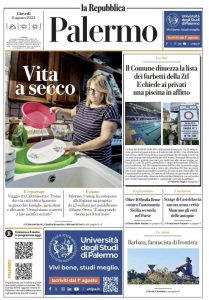 L'edizione odierna de La Repubblica Palermo dedica un titolo in prima pagina alla siccità in Sicilia.