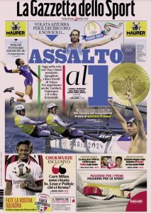 L'edizione odierna de La Gazzetta dello Sport dedica un titolo in prima pagina a Tamberi.
