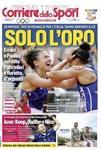 L'edizione odierna de Il Corriere dello Sport dedica un titolo in prima pagina alle olimpiadi e l'oro nel tennis.