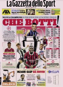 Prima pagina Gazzetta dello Sport: “Nuova Champions, che botti!”