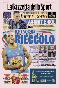 L'edizione odierna de La Gazzetta dello Sport dedica un titolo in prima pagina alle Olimpiadi e a Jacobs.