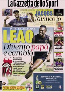 L'edizione odierna de La Gazzetta dello Sport dedica un titolo in prima pagina a Leao.