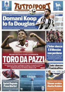 L'edizione odierna di Tuttosport dedica un titolo in prima pagina al pareggio del Torino a San Siro.