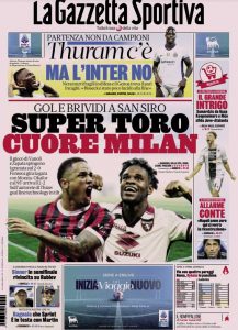 L'edizione odierna de "La Gazzetta dello Sport" dedica un titolo in prima pagina al pareggio tra Milan e Torino.