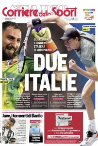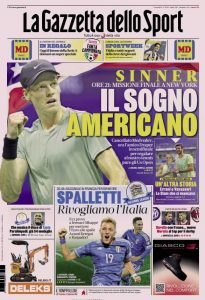 L'edizione odierna de La Gazzetta dello Sport dedica un titolo in prima pagina a Sinner.