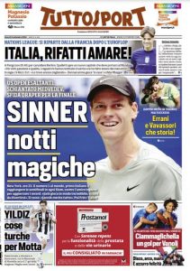 L'edizione odierna di Tuttosport dedica un titolo in prima pagina a Sinner.