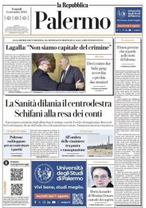 L'edizione odierna de La Repubblica Palermo dedica un titolo in prima pagina alle repliche di Lagalla verso l'arcivescovo.