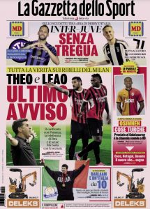 L'edizione odierna de La Gazzetta dello Sport dedica un titolo in prima pagina al Milan.