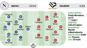 Corriere dello Sport: “Brunori ancora fuori. Le probabili formazioni di Napoli-Palermo e come vederla in tv”