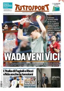 L'edizione odierna di Tuttosport dedica un titolo in prima pagina alla vittoria di Sinner a Shanghai.