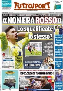 L'edizione odierna di Tuttosport dedica un titolo in prima pagina alla Juventus e alla squalifica di Conceição.