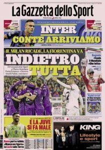 L'edizione odierna de "La Gazzetta dello Sport" dedica un titolo in prima pagina al Milan sconfitto dalla Fiorentina.