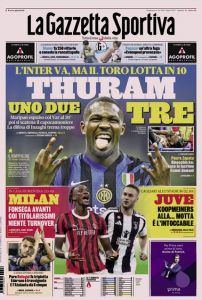 L'edizione odierna de La Gazzetta dello Sport dedica un titolo in prima pagina all'Inter e a Thuram.