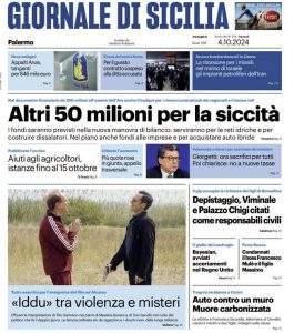 L'edizione odierna de Il Giornale di Sicilia dedica un titolo in prima pagina alla siccità in Sicilia.