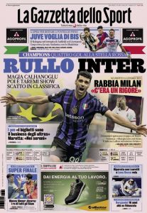 L'edizione odierna de La Gazzetta dello Sport dedica un titolo in prima pagina all'Inter che ha vinto ieri in Champions.