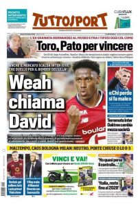 L'edizione odierna di Tuttosport dedica un titolo in prima pagina al mercato di Juve e Inter.