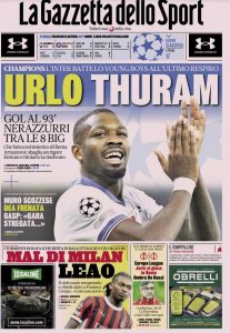 Prima pagina Gazzetta dello Sport: “Urlo Thuram”