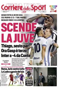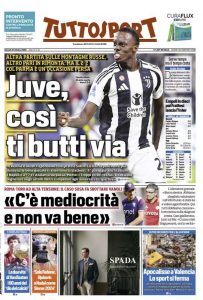 L'edizione odierna di Tuttosport dedica un titolo in prima pagina alla Juventus che ha pareggiato in casa contro il Parma.