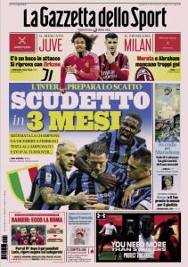 L'edizione odierna de La Gazzetta dello Sport dedica un titolo in prima pagina all'Inter.