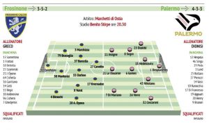 Le probabili formazioni per il match di questa sera tra Frosinone e Palermo, pubblicate oggi dal Corriere dello Sport, vedono...