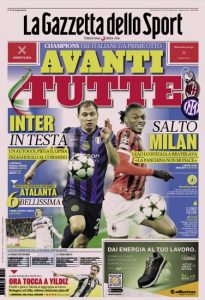 L'edizione odierna de "La Gazzetta dello Sport" dedica un titolo in prima pagina alle italiane impegnate nelle coppe europee.
