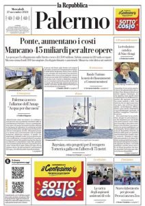 L'edizione odierna de "La Repubblica Palermo" dedica un titolo in prima pagina alla crisi idrica a Palermo.