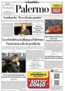 L'edizione odierna de Il Giornale di Sicilia dedica un titolo in prima pagina al razionamento dell'acqua a Palermo.
