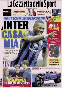 L'edizione odierna de La Gazzetta dello Sport dedica un titolo in prima pagina all'Inter.