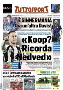 L'edizione odierna di Tuttosport dedica un titolo in prima pagina a Sinner.